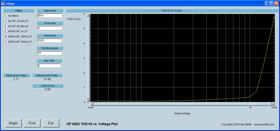 Max out high-Z 150 ohms 1kHz: 16V RMS / 22V peak / 44V peak-to-peak / 1.7W
